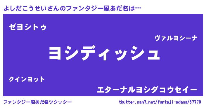 | 可愛いあだ名 | 『よしだこうせいママ』『よしうちぇる』 |