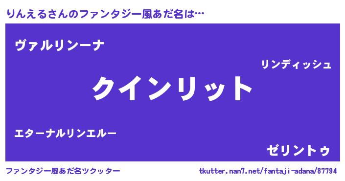 | 男性向けラノベタイトル風あだ名 | 『ノーゲーム・ノーリンエル』 |