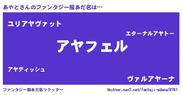 | ヒーロー風カッコイイあだ名 | 『スーパーアヤト』『仮面アヤダー』 |