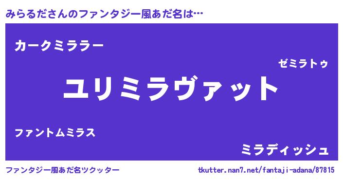 | ヒーロー風カッコイイあだ名 | 『ネオミラルダ』『超時空戦士ミラルダ』 |