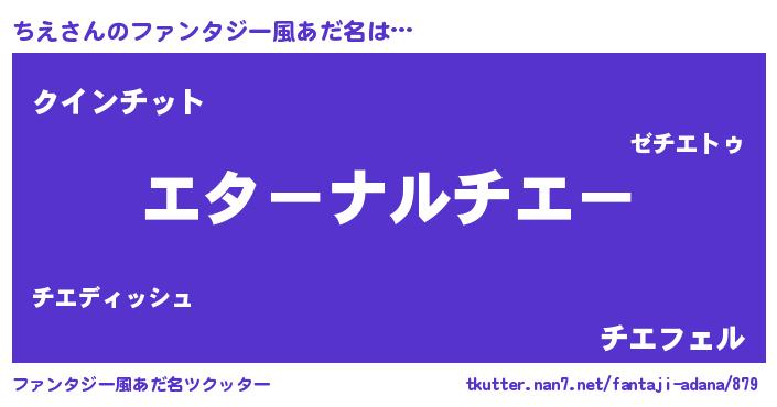 | 女子向けラノベタイトル風あだ名 | 『ちえ伯爵の花嫁』『ちえ夫妻のなれそめ』 |