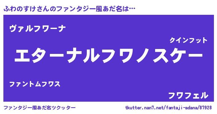 | 男性向けラノベタイトル風あだ名 | 『やはりふわのすけの青春ラブコメはまちがっている 』 |