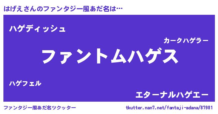 | 女子向けラノベタイトル風あだ名 | 『はげえは平凡を望む』『はげえの婚約者』 |