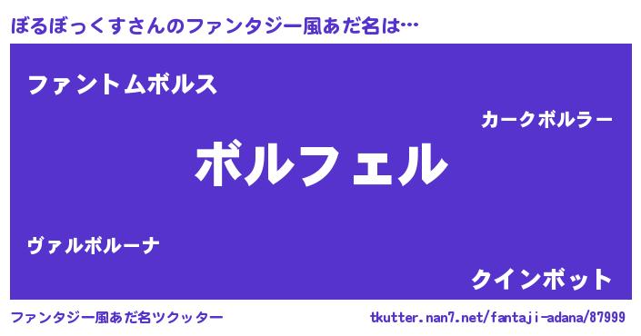 | 胡散臭い通販商品みたいなあだ名 | 『必ず成功する霊験あらたかなお札…その名も「ぼるぼっくす」』 |