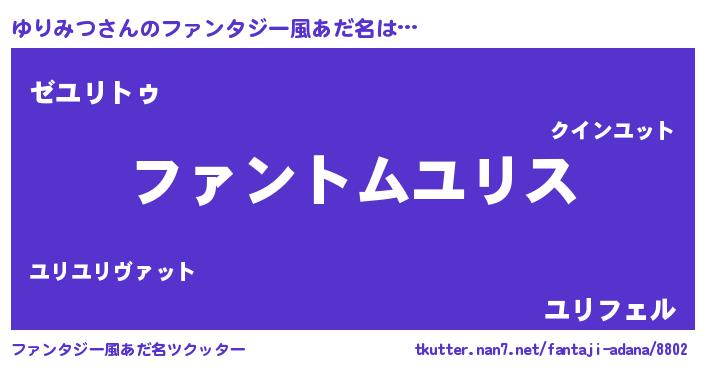 | 男性向けラノベタイトル風あだ名 | 『ゆりみつの嫁は女の子じゃないと思った?』 |