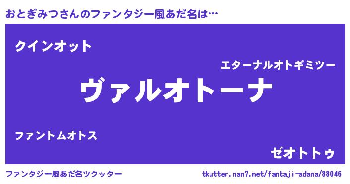 | 欧米人風あだ名 | 『アンジェラ・おとぎみつ』 |