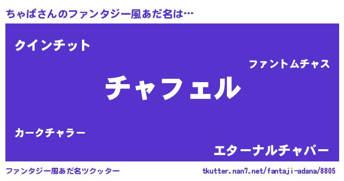 | 胡散臭い通販商品みたいなあだ名 | 『必ず成功する水晶球…その名も「ちゃば」』 |