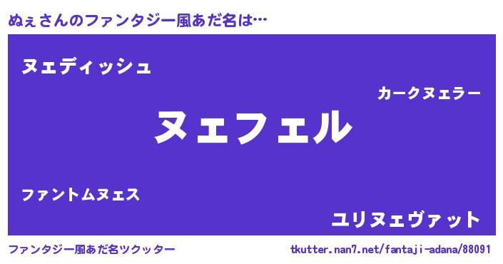 | ポケモン風あだ名 | 『ヌェチュウ』『ゼニヌェ』『ヒヌェ』 |