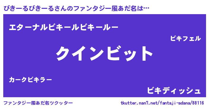 | 男性向けラノベタイトル風あだ名 | 『びきーるびきーるに滅ぼされるだけの簡単なお仕事です』 |