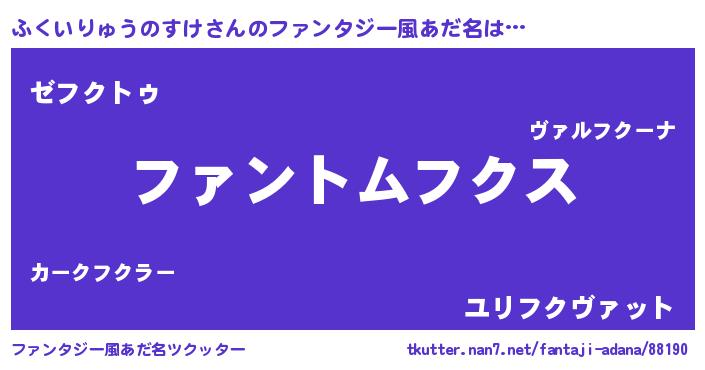 | 男性向けラノベタイトル風あだ名 | 『ふくいりゅうのすけに滅ぼされるだけの簡単なお仕事です』 |