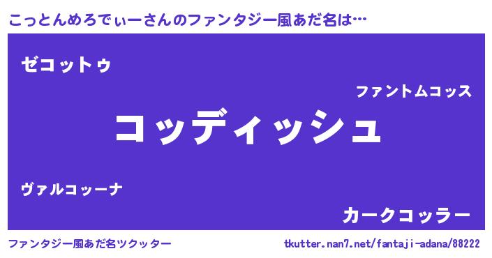 | ヘコむあだ名 | 『こっとんめろでぃー(笑)』『こっお』 |