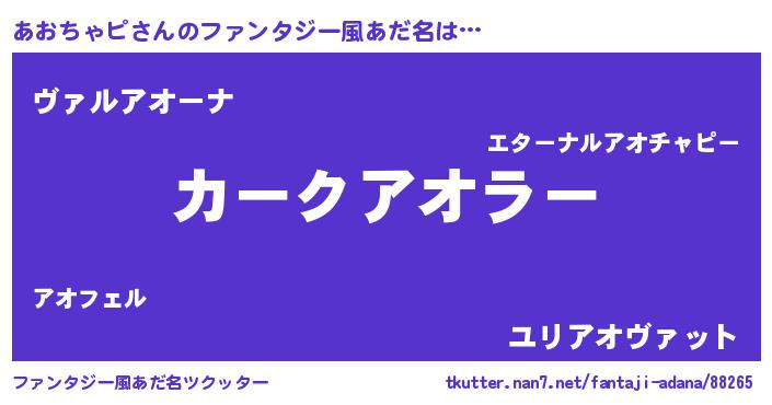 | 胡散臭い通販商品みたいなあだ名 | 『世界中を虜にした100年もののヴィンテージワイン…その名も「あおちゃピ」』 |