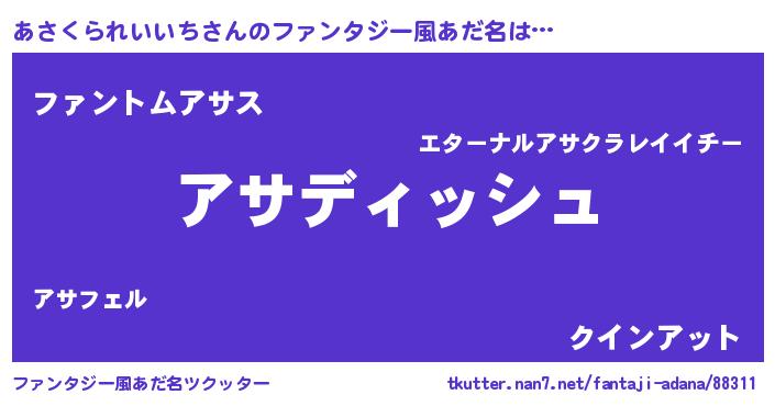 | ヒーロー風カッコイイあだ名 | 『ネオアサクラレイイチ』『幻影騎士アサ』 |