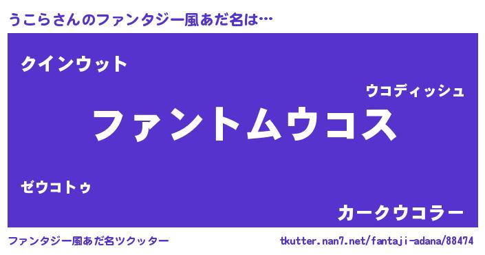 | ヒーロー風カッコイイあだ名 | 『炎刃騎士ウコ』『天空の使者うこら』 |