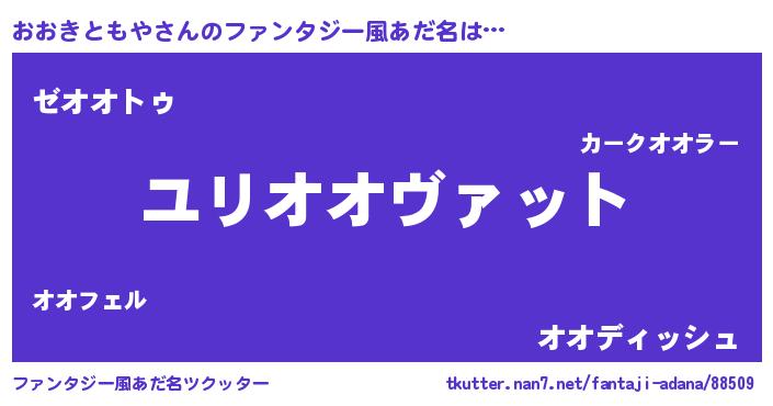 | 男性向けラノベタイトル風あだ名 | 『おおきともや~年齢イコール彼女いない歴の魔法使い~』 |