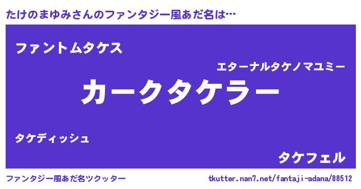 | 意味不明あだ名 | 『とにかく怪しいたけのまゆみ』 |