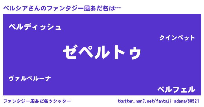 | ヒーロー風カッコイイあだ名 | 『超時空戦士ペルシア』『ネオペルシア』 |