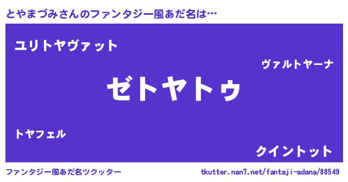 | 可愛いあだ名 | 『とやうちぇる』『とやぷりん』 |