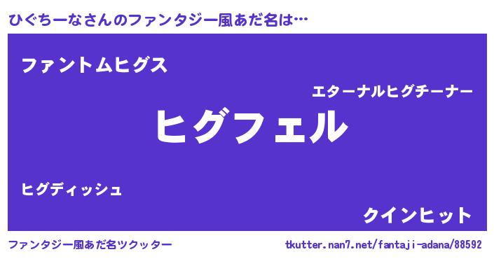 | ポケモン風あだ名 | 『ヒグゴンZ』『ヒグチュウ』 |
