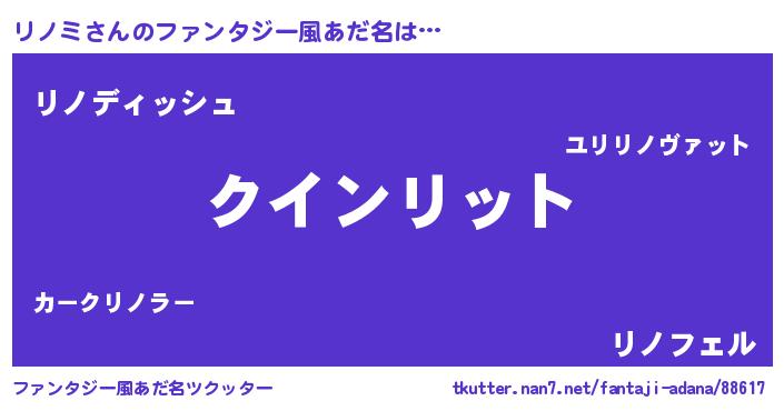 | 男性向けラノベタイトル風あだ名 | 『おまえをオタクにしてやるから、俺をリノミにしてくれ! 』 |