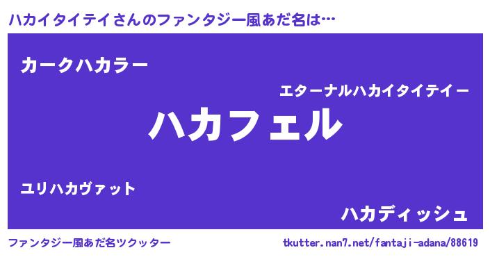 | 男性向けラノベタイトル風あだ名 | 『ハカイタイテイアートオンライン』 |