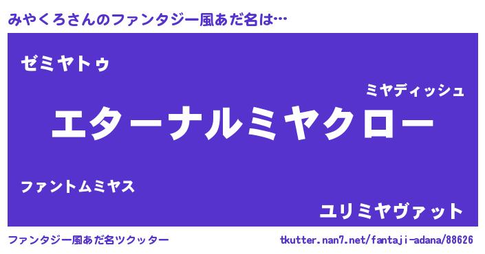 | 意味不明あだ名 | 『みやくろフォーエバー』『自称みやくろ』 |