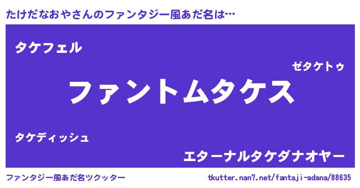 | ヘコむあだ名 | 『たけぷりん』『たけにー』 |