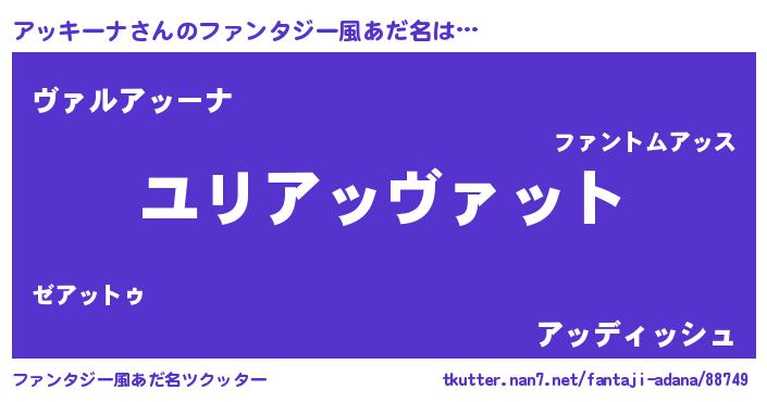 | 女子向けラノベタイトル風あだ名 | 『アッキーナの玉の輿計画!』 |