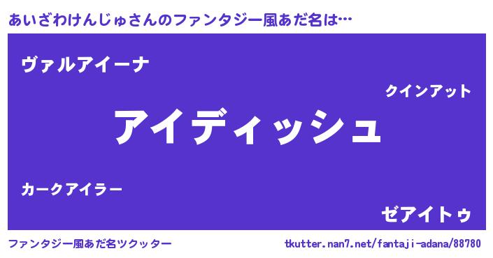 | 男性向けラノベタイトル風あだ名 | 『誰もが恐れるあのあいざわけんじゅが、ぼくの専属メイドになるようです。』 |