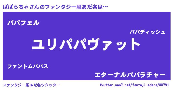 | 男性向けラノベタイトル風あだ名 | 『転生したらぱぱらちゃだった件』 |