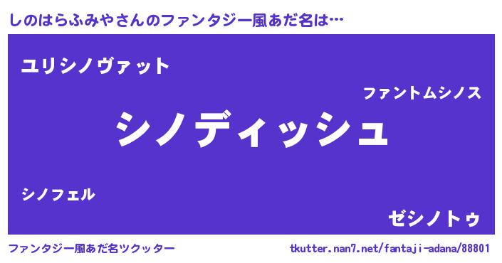 | 男性向けラノベタイトル風あだ名 | 『しのはらふみやという概念が存在しない退屈な世界 』 |