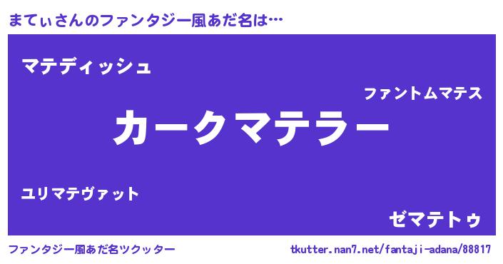 | 意味不明あだ名 | 『永久保存まてぃ』『自称まてぃ』 |