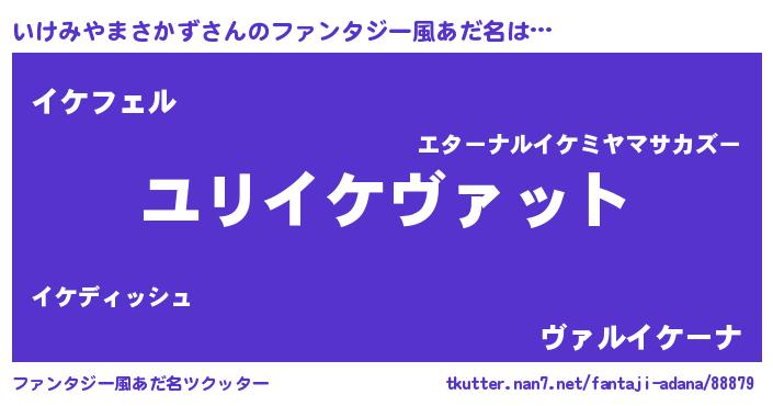 | 男性向けラノベタイトル風あだ名 | 『いけみやまさかず~年齢イコール彼女いない歴の魔法使い~』 |