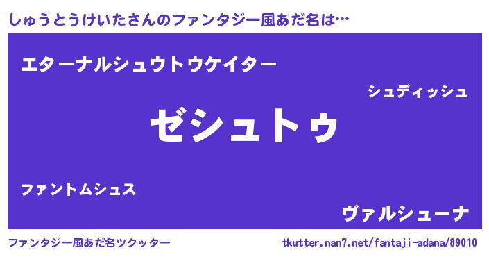 | 意味不明あだ名 | 『自称しゅうとうけいた』 |