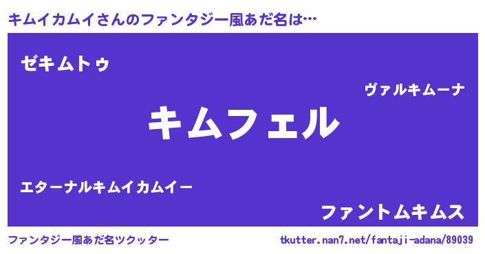 | 男性向けラノベタイトル風あだ名 | 『キムイカムイの憂鬱』 |