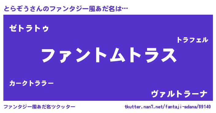 | 女子向けラノベタイトル風あだ名 | 『とらぞう様がみてる』 |