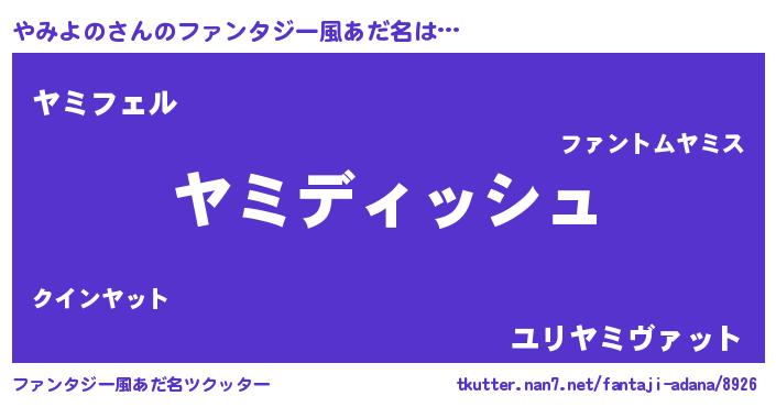 | 男性向けラノベタイトル風あだ名 | 『やみよのという概念が存在しない退屈な世界 』 |