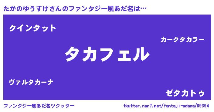 | 男性向けラノベタイトル風あだ名 | 『タカノユウスケアートオンライン』 |