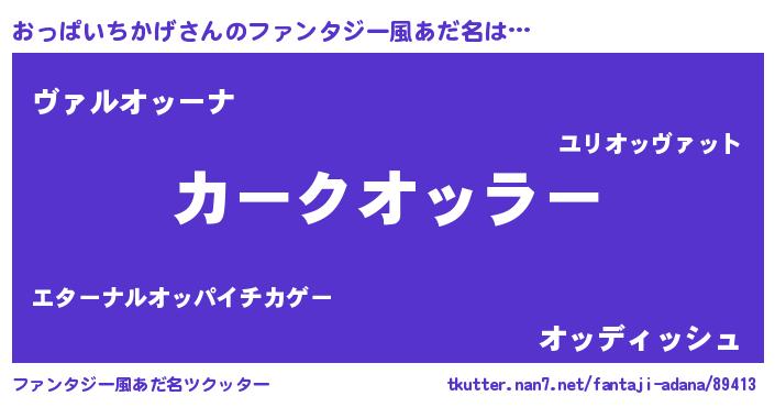 | 欧米人風あだ名 | 『おっぱいちかげ・ステッグマイヤー』 |