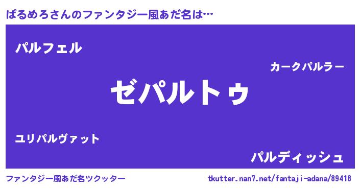 | 男性向けラノベタイトル風あだ名 | 『魔法科高校のぱるめろ』 |