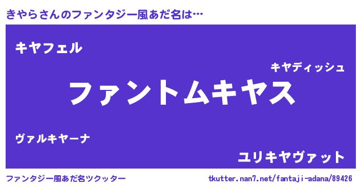 | 自動車の名前っぽいあだ名 | 『キルトヤパン』『キヤティマ』 |