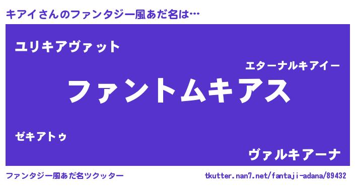 | 女子向けラノベタイトル風あだ名 | 『キアイは平凡を望む』『キアイの婚約者』 |