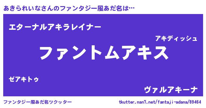 あきられいなさんのファンタジー風あだ名をツクッター!