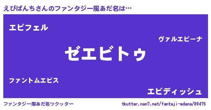 | 男性向けラノベタイトル風あだ名 | 『えびぱんちに滅ぼされるだけの簡単なお仕事です』 |