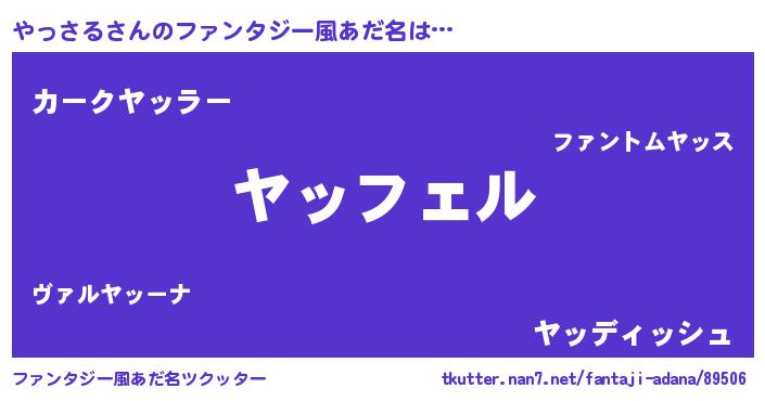 | 男性向けラノベタイトル風あだ名 | 『ヤッサルアートオンライン』 |