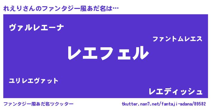 | 男性向けラノベタイトル風あだ名 | 『れえりの憂鬱』『魔弾の王とれえり』 |