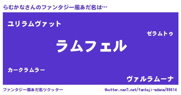| 男性向けラノベタイトル風あだ名 | 『らむかなの憂鬱』『ラムカナスレイヤー』 |