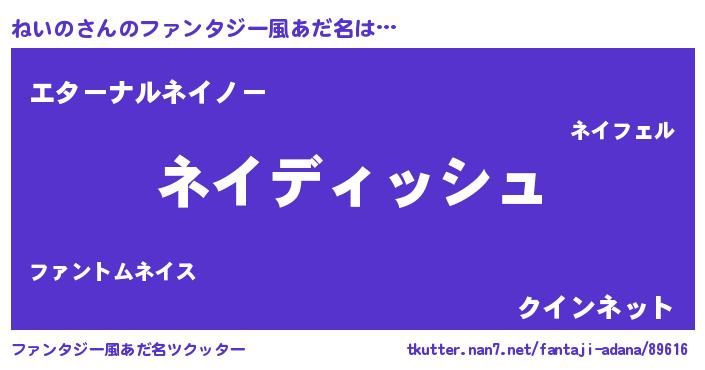 | 女子向けラノベタイトル風あだ名 | 『ねいのの契約王妃』『ねいの恋絵巻』 |