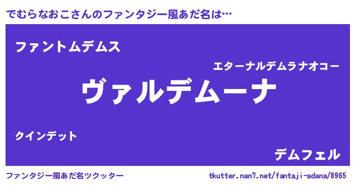 | 男性向けラノベタイトル風あだ名 | 『魔弾の王とでむらなおこ』 |