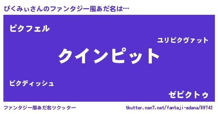 | 女子向けラノベタイトル風あだ名 | 『死神ぴくみぃの再婚』 |